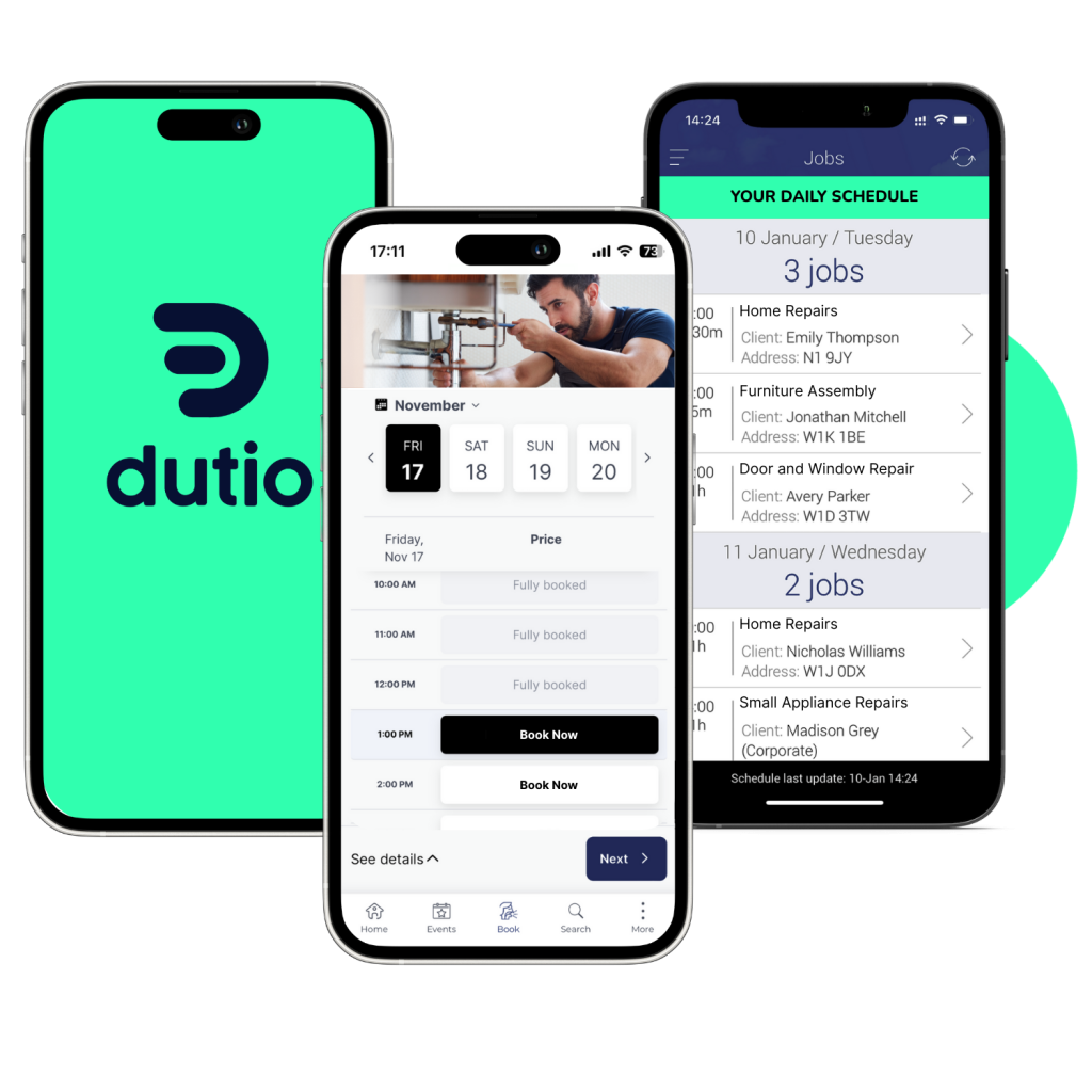 Dutio is built for busy business owners – set it up in minutes, manage it with ease, and start taking bookings instantly. No complicated software, no tech skills needed. Just a smooth, plug-and-play solution that works right out of the box.